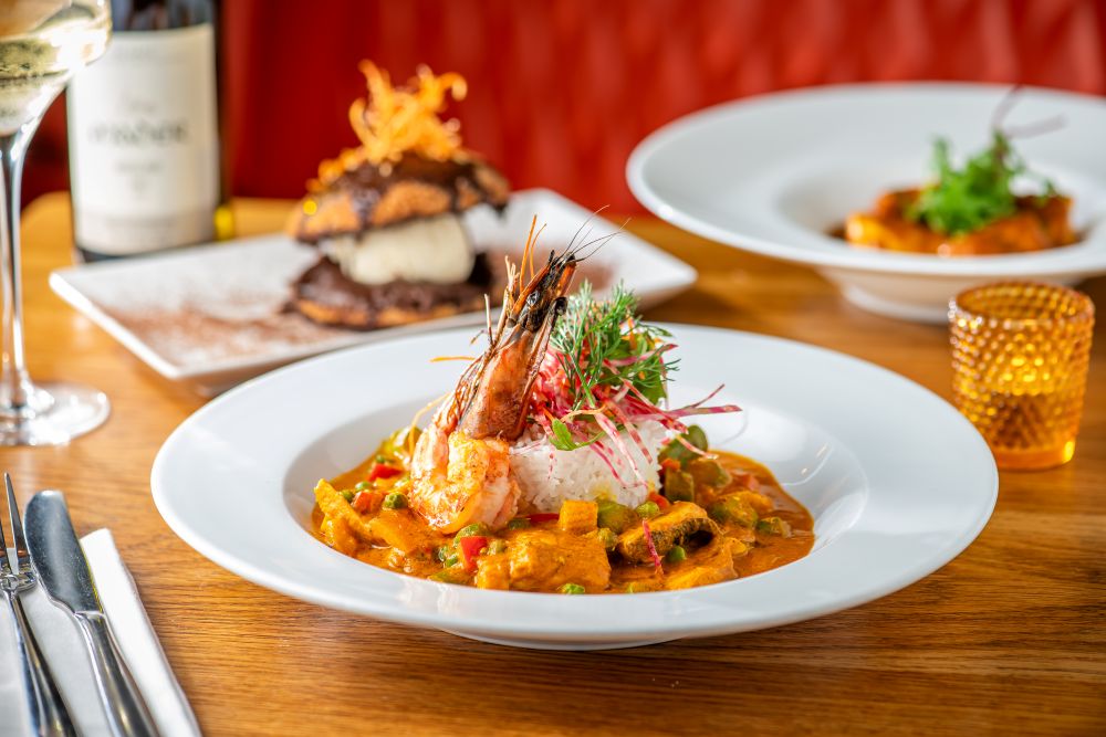Begin with refined starters such as Truffled Scallops or Sicilian Prawn Tortelloni, followed by mains including Pan-fried Halibut or a Thai Fish Curry. To finish, indulge in our Orange and Chocolate Profiterole or an Apple and Raspberry Crumble - the perfect final note to the evening.